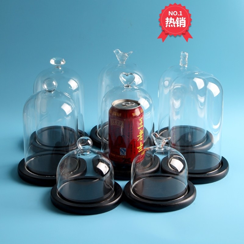 玻璃罩子黑色底防尘罩干花保鲜花罩子微景观黏土手办装饰摆件花瓶热门设计联盟服务商