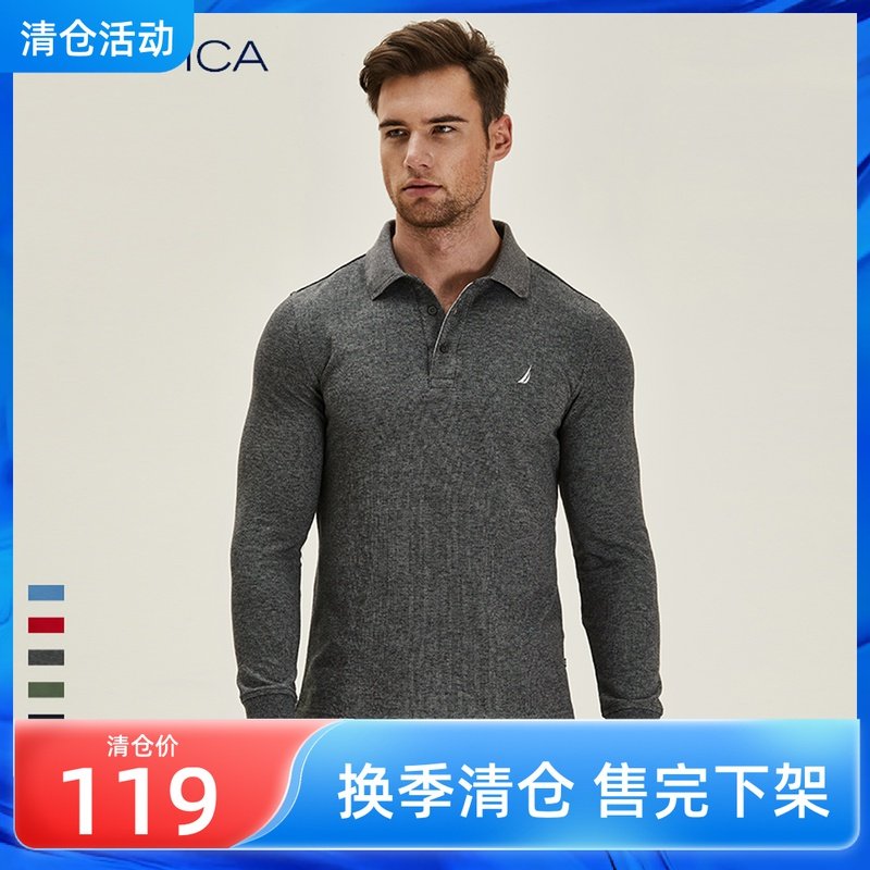 NAUTICA/诺帝卡新品男装春秋男士经典长袖休闲POLO衫修身翻领商务热门设计联盟服务商