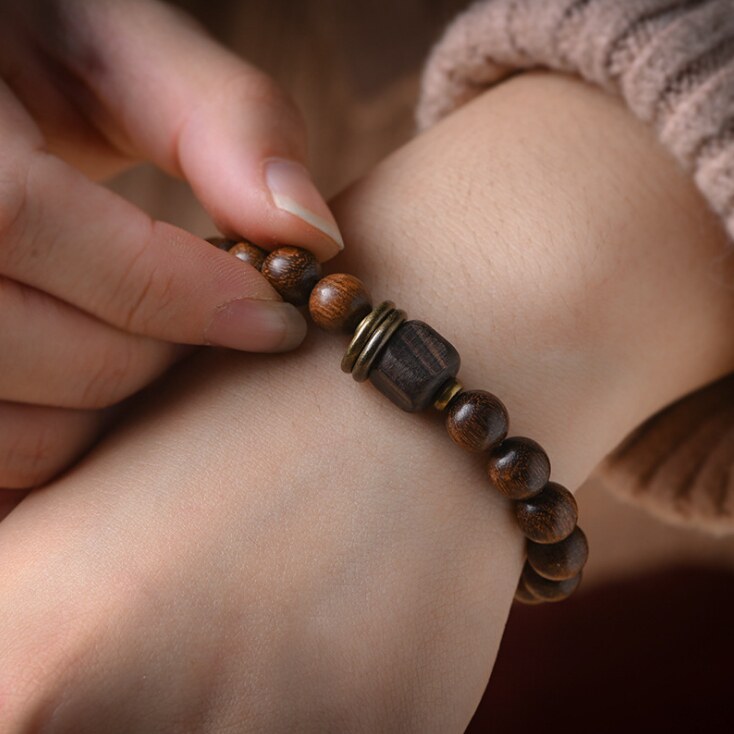 金丝檀木手串单圈佛珠手链女男学生情侣楠木多圈ins小众设计简约热门设计联盟服务商