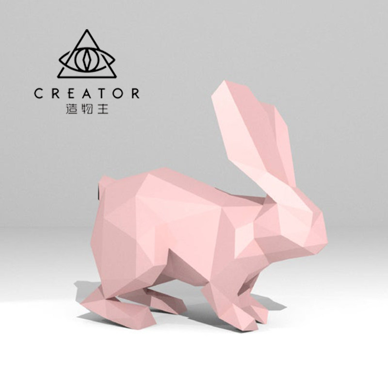 3D立体纸模型趴着的兔子商场美陈生日橱窗定制动物道具手工折纸艺热门设计联盟服务商