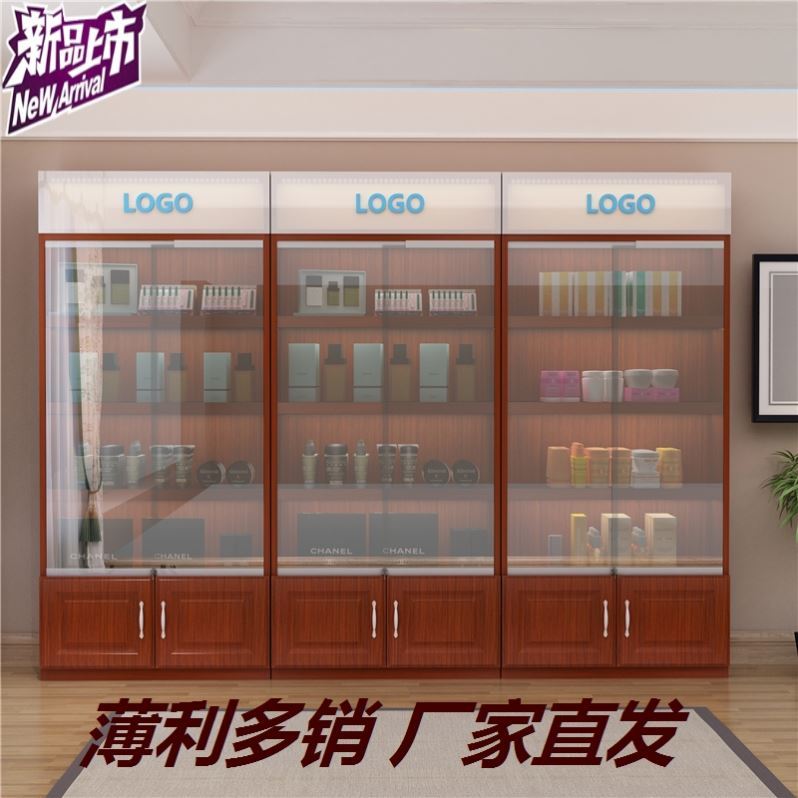 玻璃展示柜美容院带灯带锁门商场化妆品透明陈列柜子理发店产品。热门设计联盟服务商