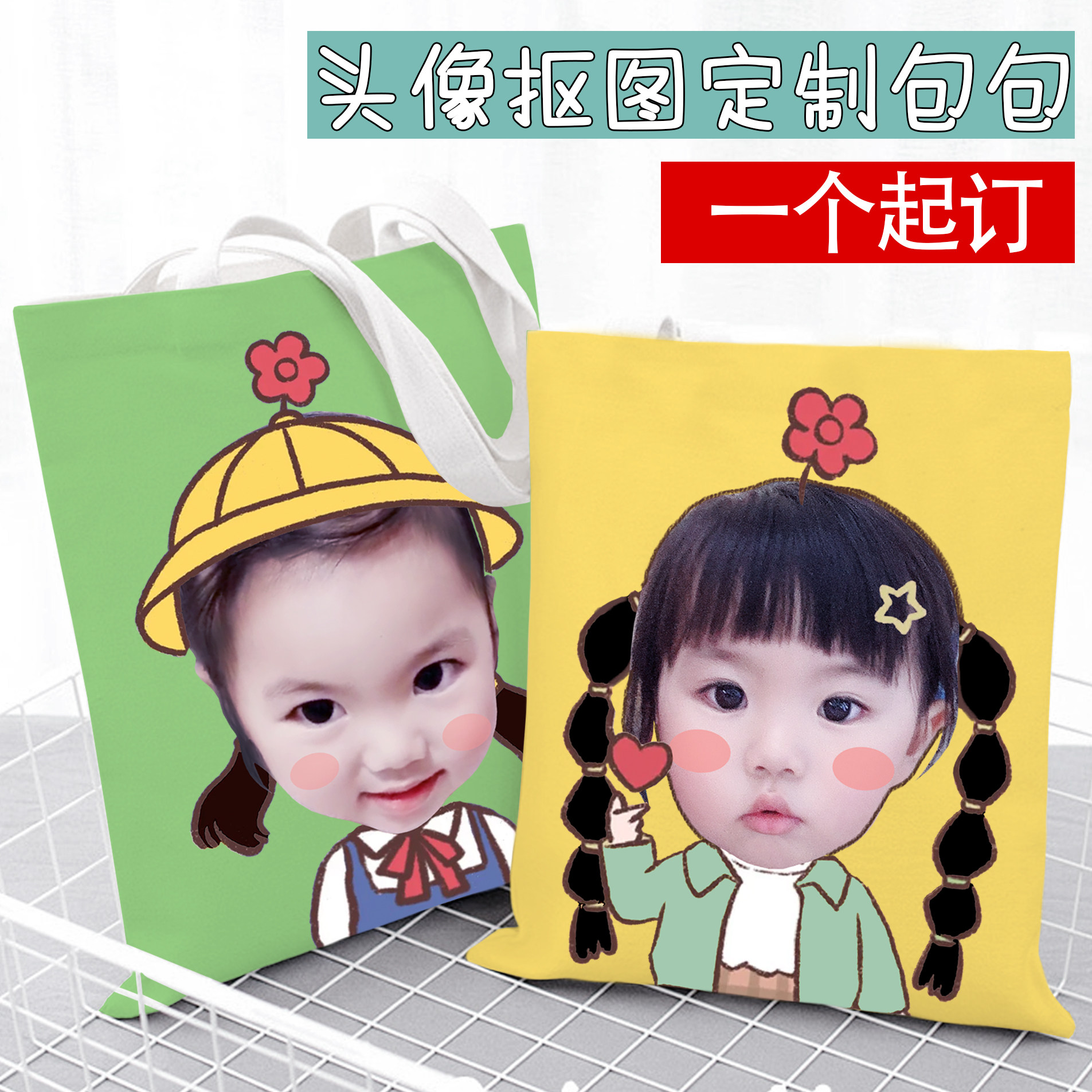 帆布包头像定制抠图照片斜纹绒来图logo设计卡通宝宝DIY购物袋热门设计联盟服务商