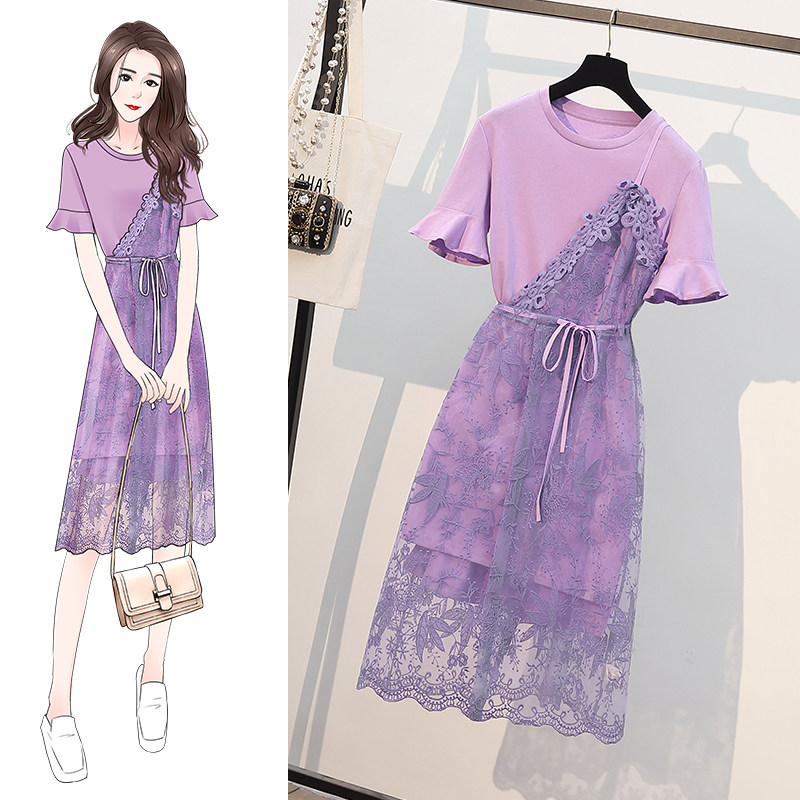 。大码女装夏季新款轻奢紫色连衣裙微胖妹妹设计感盐系炸街收腰裙热门设计联盟服务商
