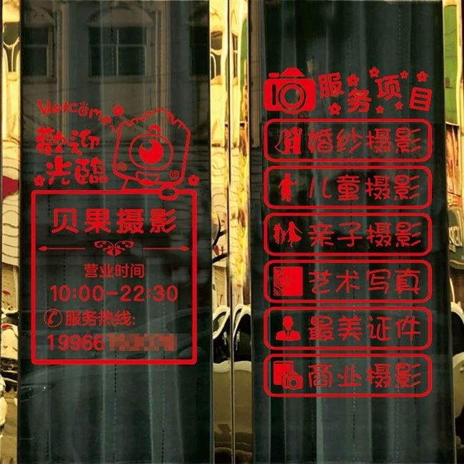 影楼婚纱摄影店玻璃门贴纸照相馆儿童摄影广告文字橱窗装饰墙贴。热门设计联盟服务商