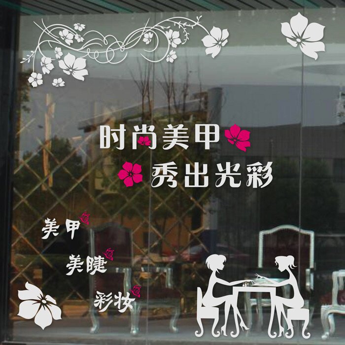 时尚美甲花藤花纹广告字贴纸美甲美容店玻璃橱窗背景墙装饰贴画。热门设计联盟服务商