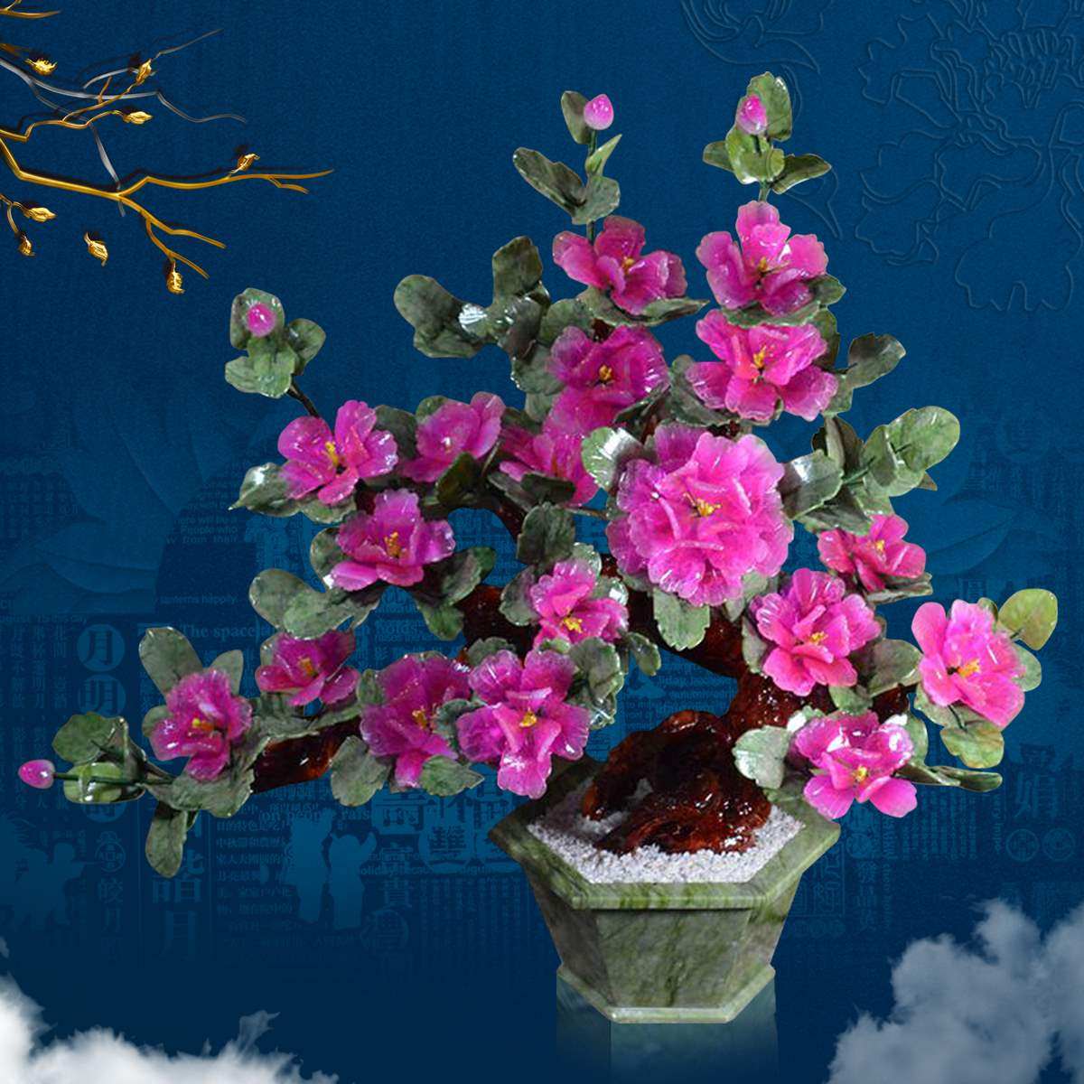 正品玉石雕刻牡丹花摆件客厅酒柜茶几装饰品办公室家居创意大工艺热门设计联盟服务商