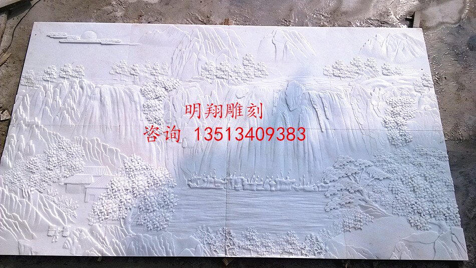 新品汉白玉高山流水风景浮雕壁画电视背景墙客厅玄关影壁室内文化热门设计联盟服务商