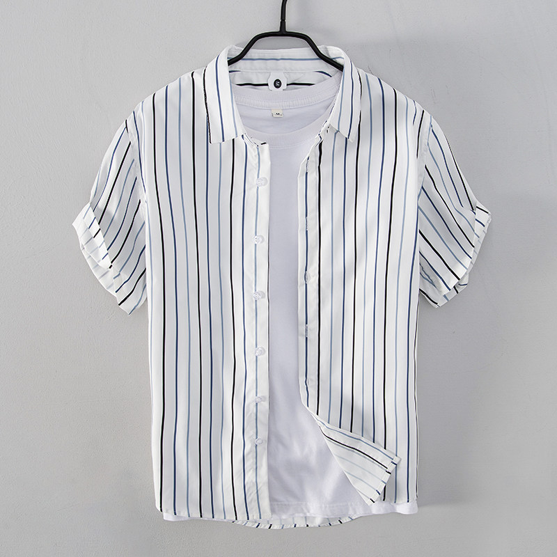 都市商务休闲小清新条纹短袖男衬衫文艺百搭新品修身打底衬衣青年热门设计联盟服务商