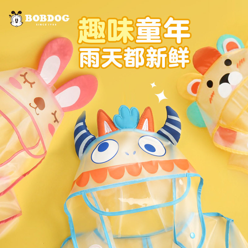 Bobdog儿童位雨衣卡通立体雨披透明幼儿园小学生雨衣2021新款热门设计联盟服务商