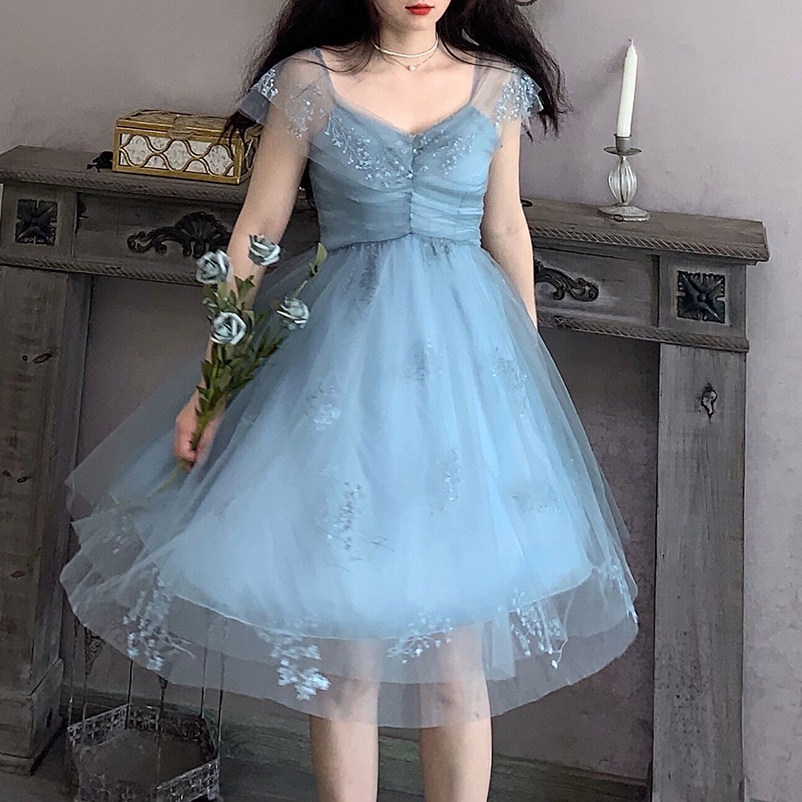 李梓仙/原创设计感小众【漫天繁星】蓝色仙女小个子连衣裙21新款热门设计联盟服务商