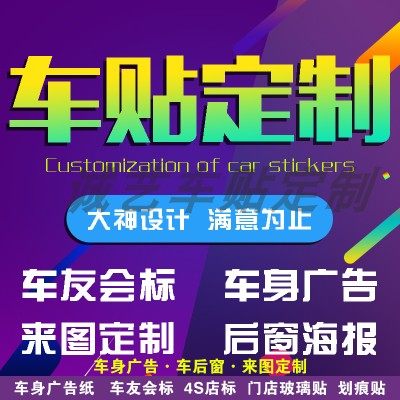 汽车广告车贴车友会喷绘印刷雕刻反光膜个性车标车贴定制定做热门设计联盟服务商