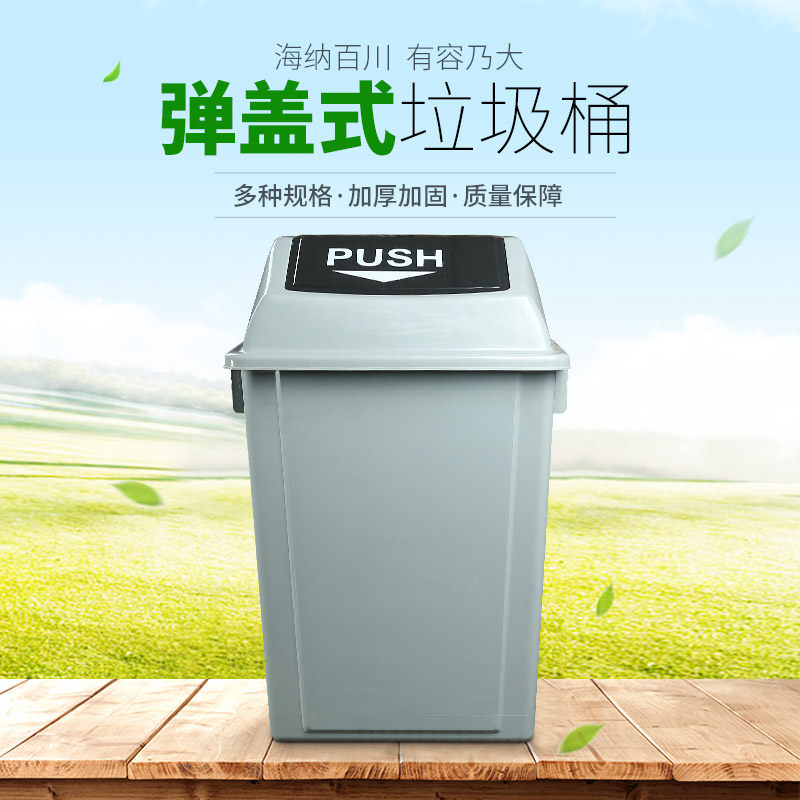 直销带盖塑料垃圾桶商用、工业翻盖垃圾桶酒店公司带盖卫生桶55L热门设计联盟服务商